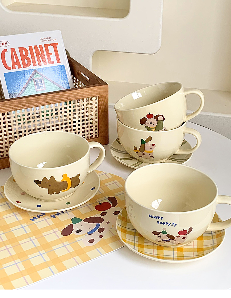 调小狗创意泡面碗带盖大容量带手柄陶瓷