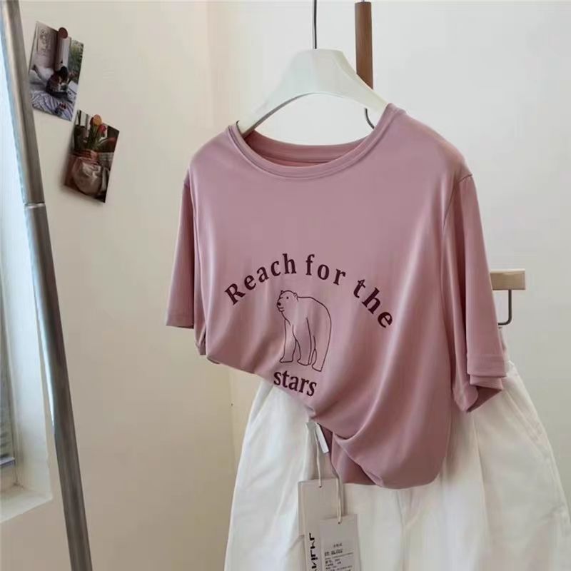垂感显瘦莫代尔宽松T恤显白字母印花圆领薄款凉爽百搭短袖上衣女