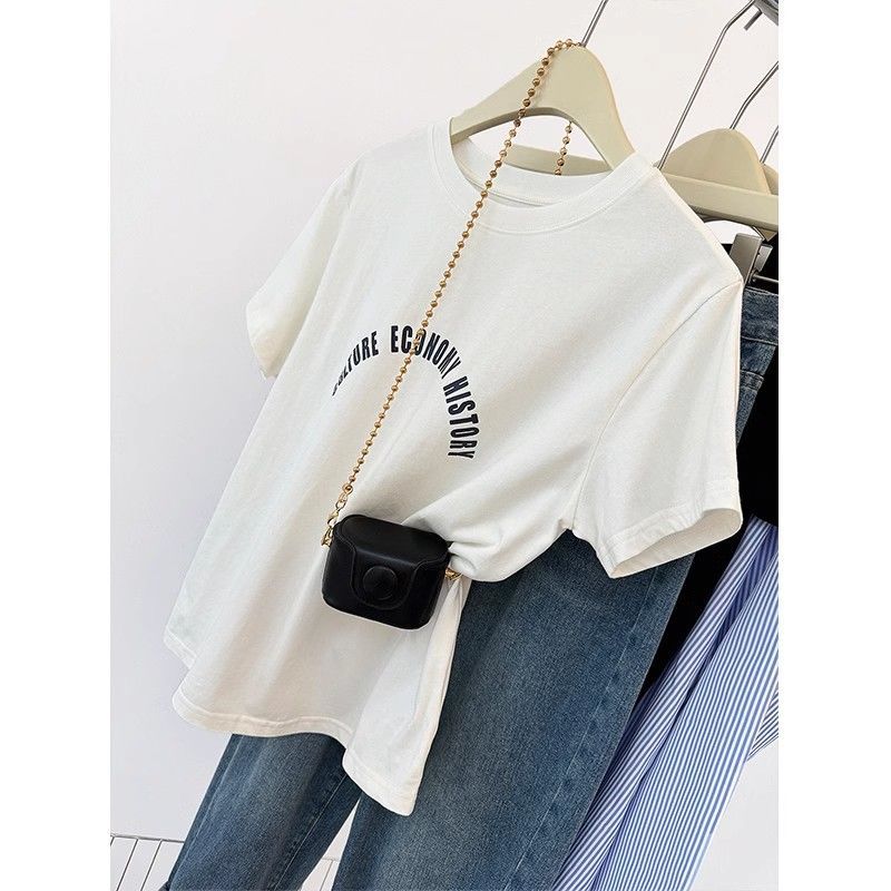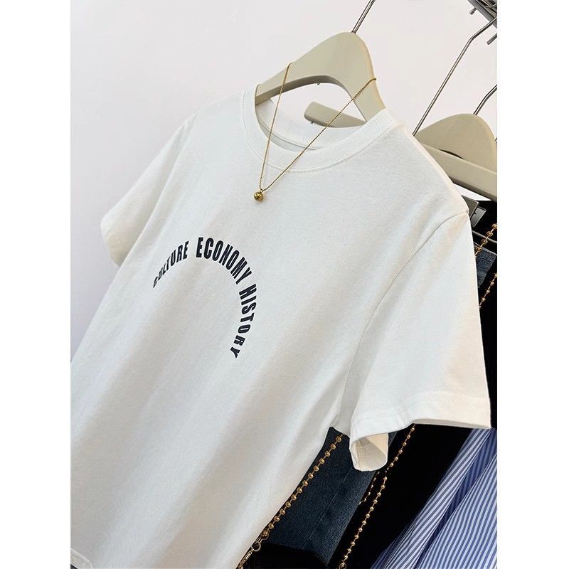 韩系白色字母印花正肩短袖T恤女夏季设计感宽松显瘦薄款半袖上衣