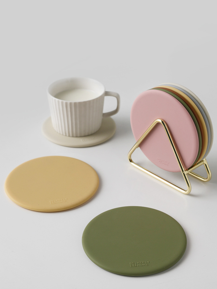 - 9cm【白黄绿蓝4个装+收纳架】小香风铂金硅胶杯垫