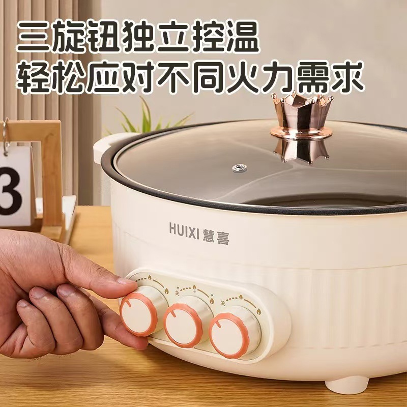 鸳鸯电火锅大容量三格火锅电煮锅家用电火锅3-4人多功能一体