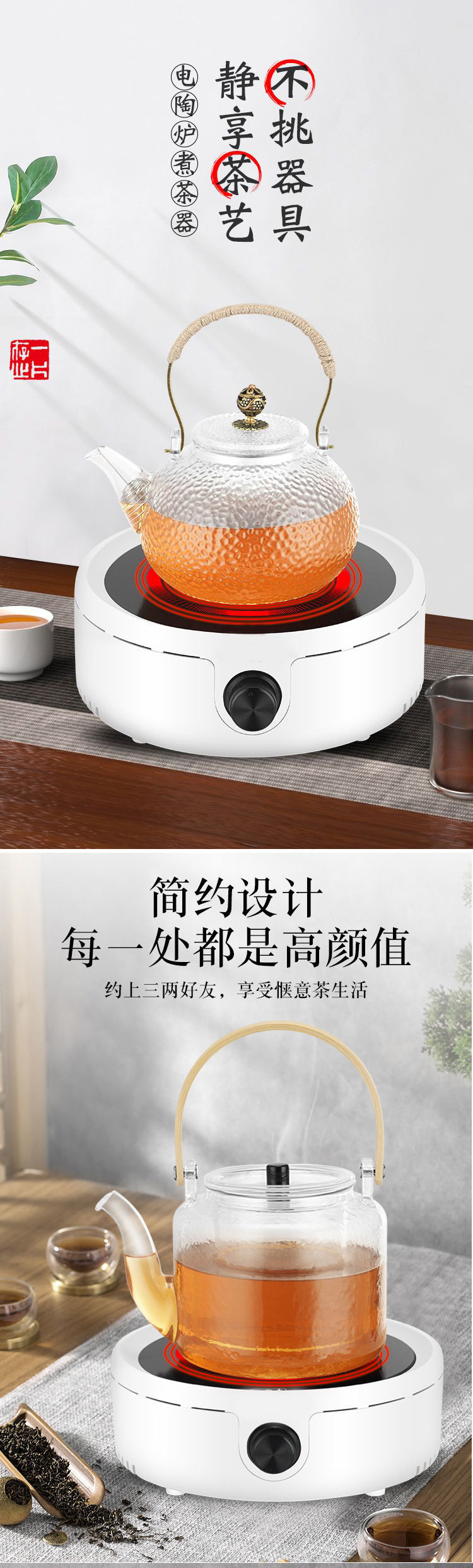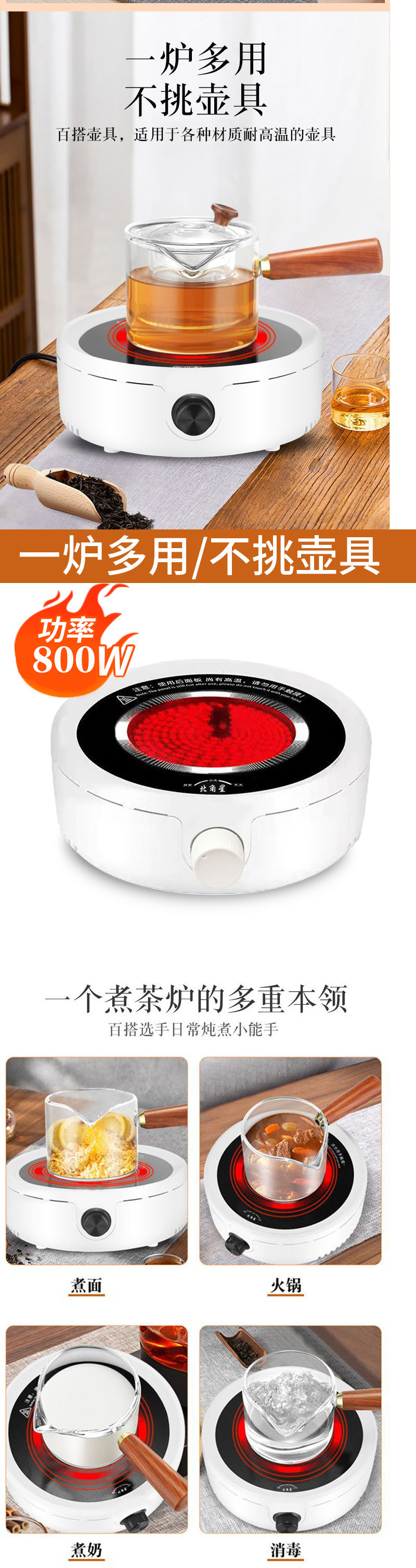 家用玻璃茶壶电热炉煮茶炉小型烧水加热电陶炉围炉煮茶壶茶具套装