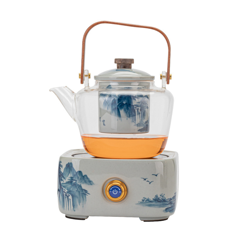 手绘山水四方炉+玻璃提梁壶