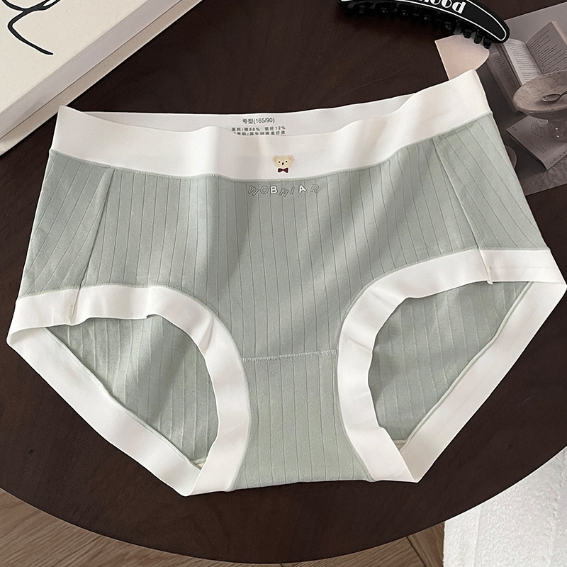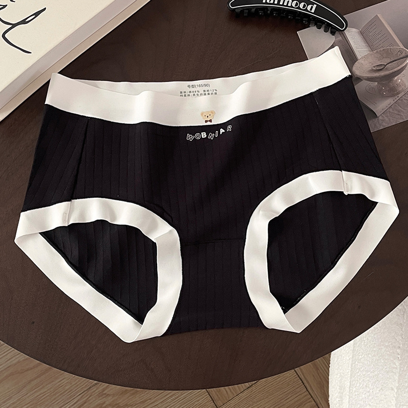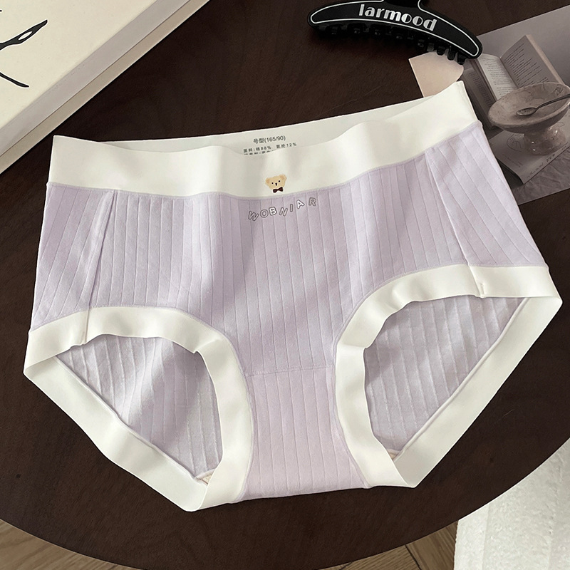 A类无痕条纹棉可爱小熊舒适纯棉内裤透气抑菌底裆中腰少女三角裤