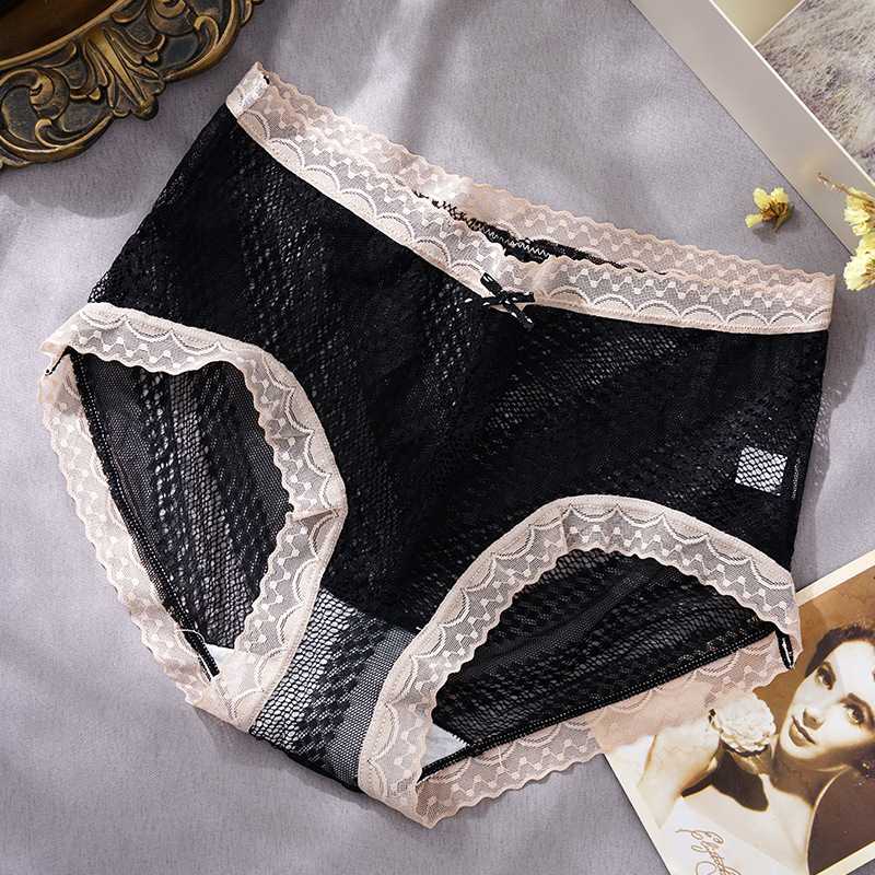 新款莫兰迪性感蕾丝无痕中腰内裤女抗菌舒适魅惑情趣三角女士内裤