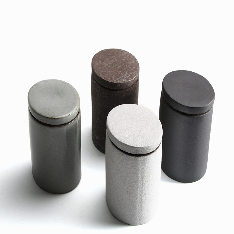 椭圆草木灰直筒茶叶罐
