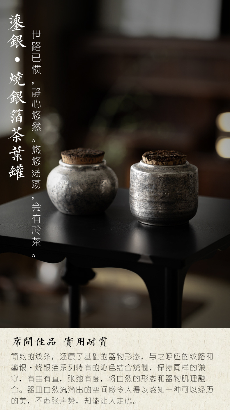 鎏银烧银箔粗陶木塞小号茶叶罐密封防潮罐子家用小容量存茶罐