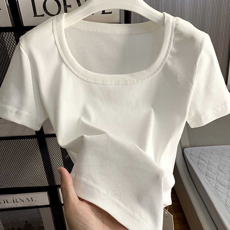 甜酷炸街方领不规则下摆正肩短袖T恤女夏季新款洋气修身百搭上衣