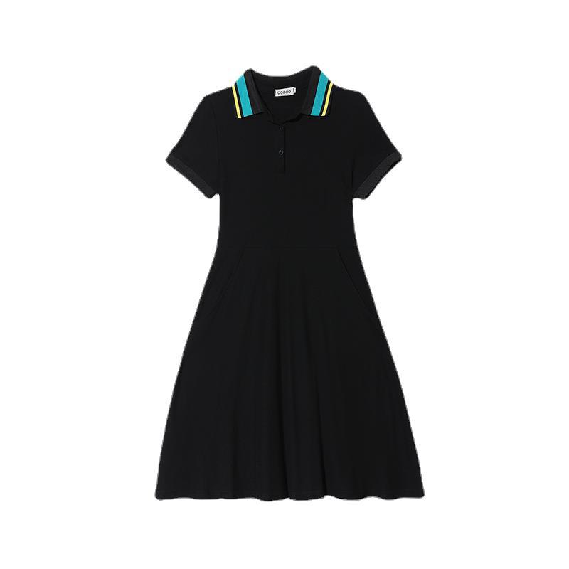 时尚翻领连衣裙藏肉显瘦a字裙夏气质减龄法式小黑裙