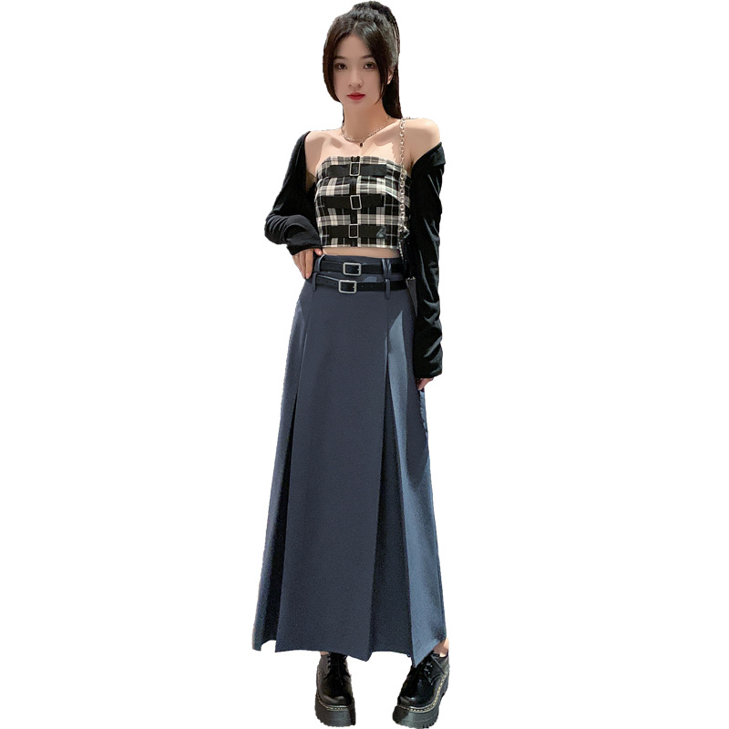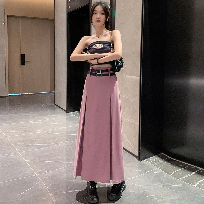 春夏新款高级感高腰显瘦皮带西装半身裙百搭开叉中长裙