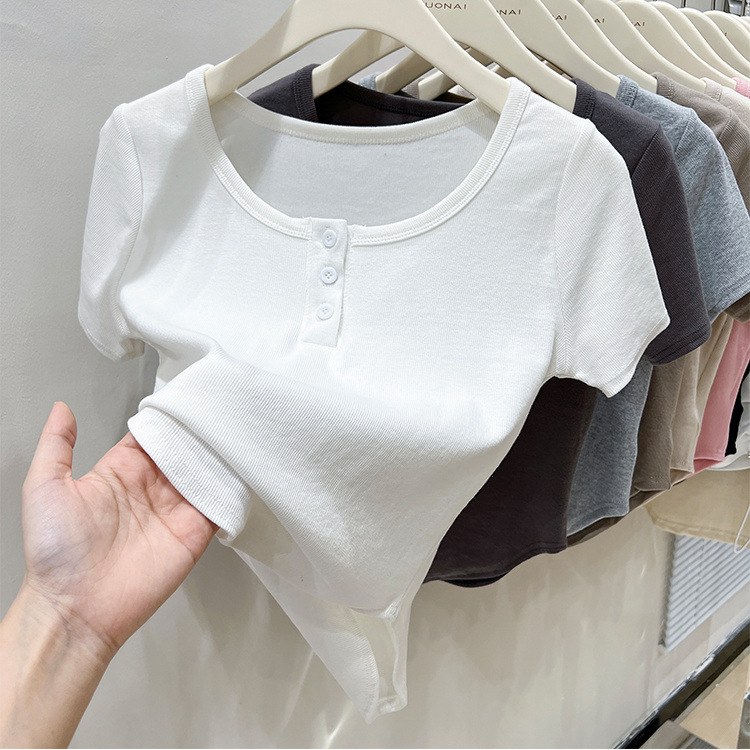 美式弧形下摆短袖t恤女夏季女装新款纯欲高级感圆领短款上衣女潮