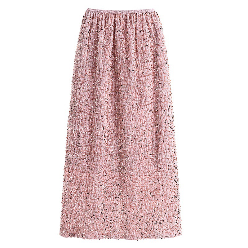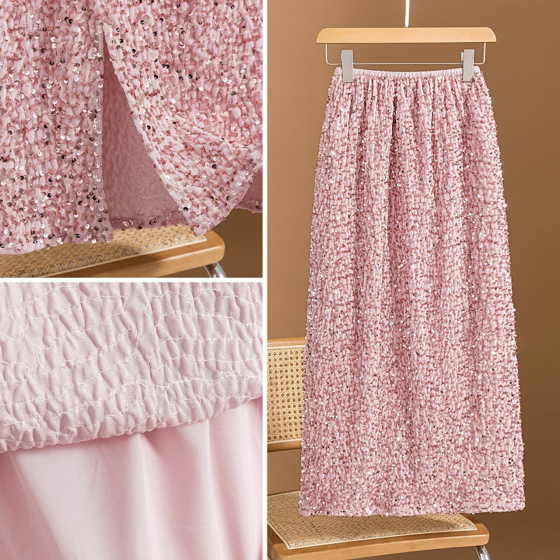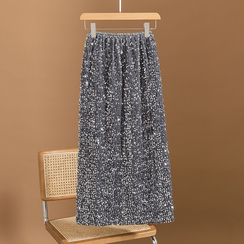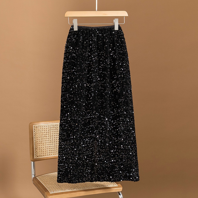 新款休闲高级感亮片胖mm显瘦高腰遮胯春秋季半裙亮a字裙薄款
