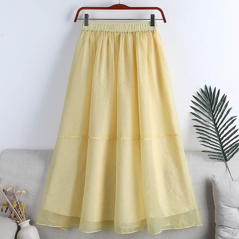 欧根纱蓬蓬A字裙春夏新款高级感网纱大摆伞裙中长款半身裙女