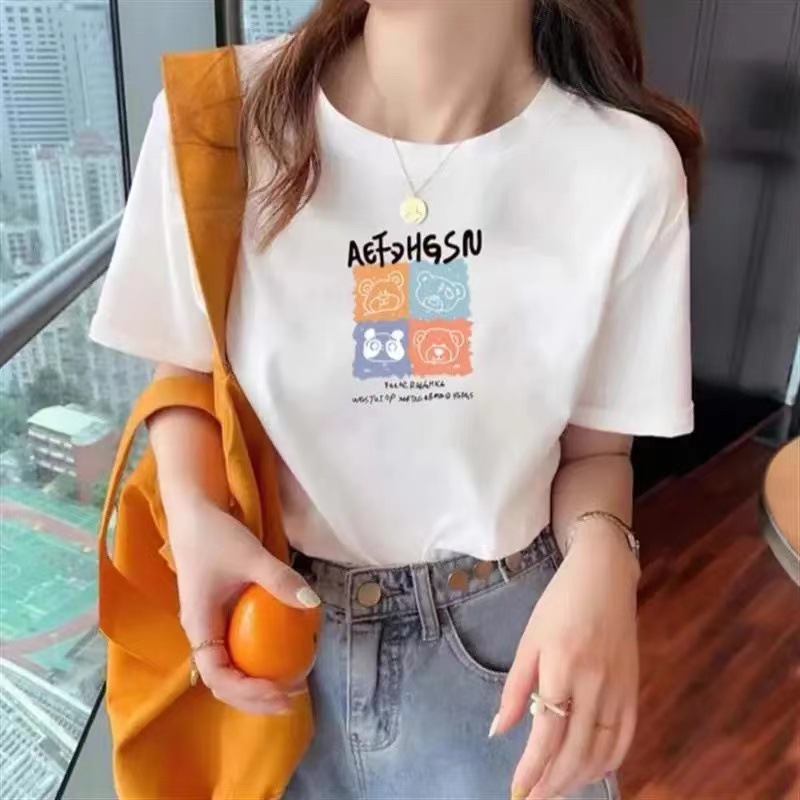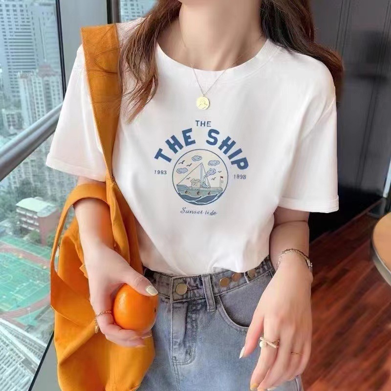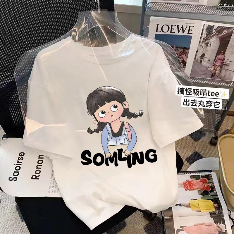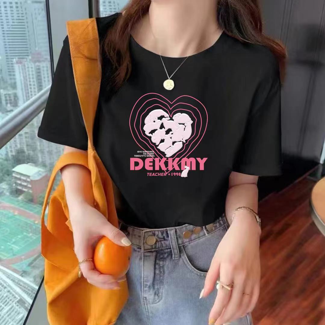 夏季新款纯棉短袖t恤女宽松洋气爱心打底休闲半袖上衣百搭显瘦ins