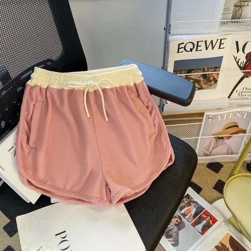 夏季高腰抽绳松紧腰短裤女韩版新款学生宽松休闲运动阔腿裤热裤