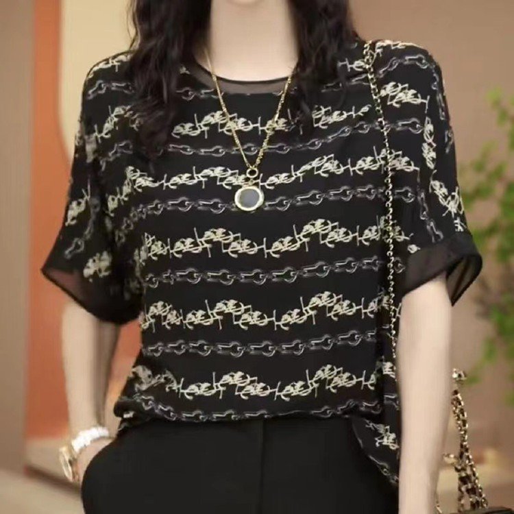 T恤女春季短袖高级感减龄气质百搭条纹夏季上衣宽松体恤新款