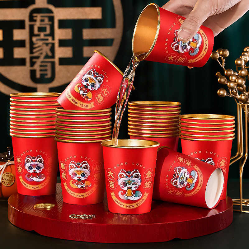 金箔蛇年家用春节纸杯加厚一次性新年过年货迎客金箔杯子高档水杯