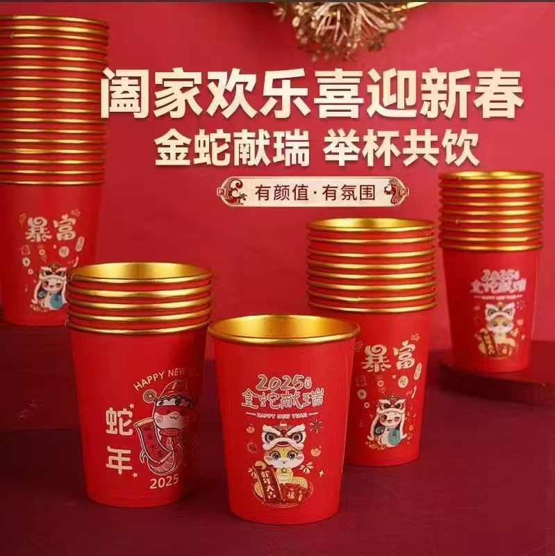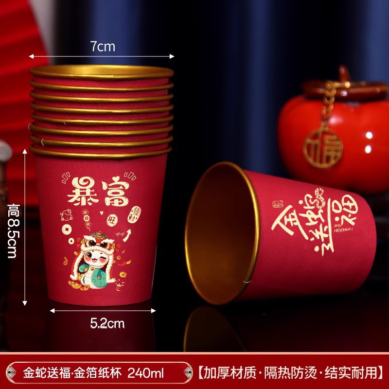 金箔纸杯加厚一次性防烫杯子新年蛇年家用红色婚喜庆杯春节新款杯