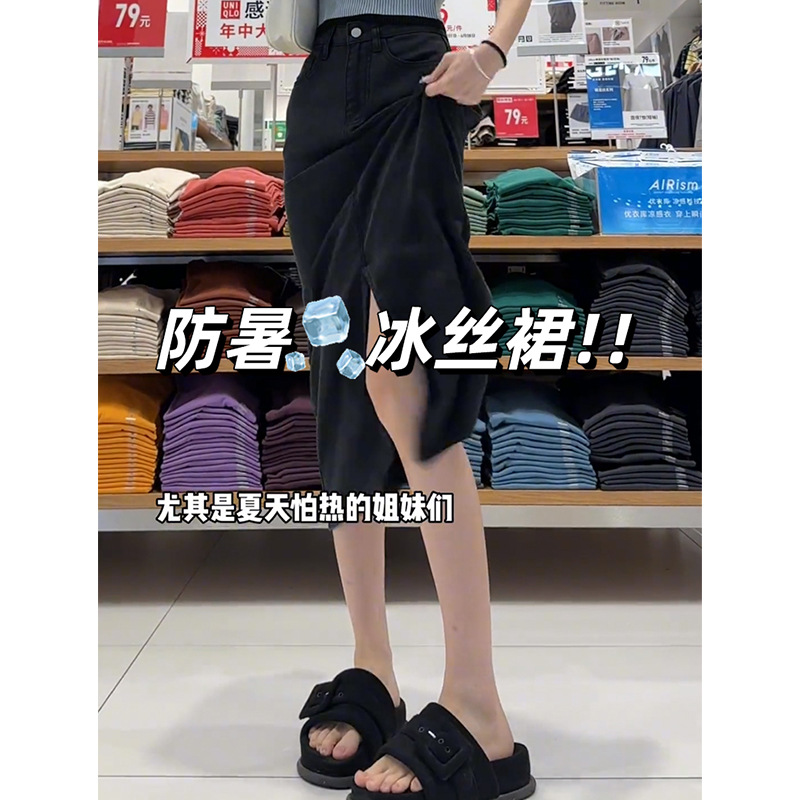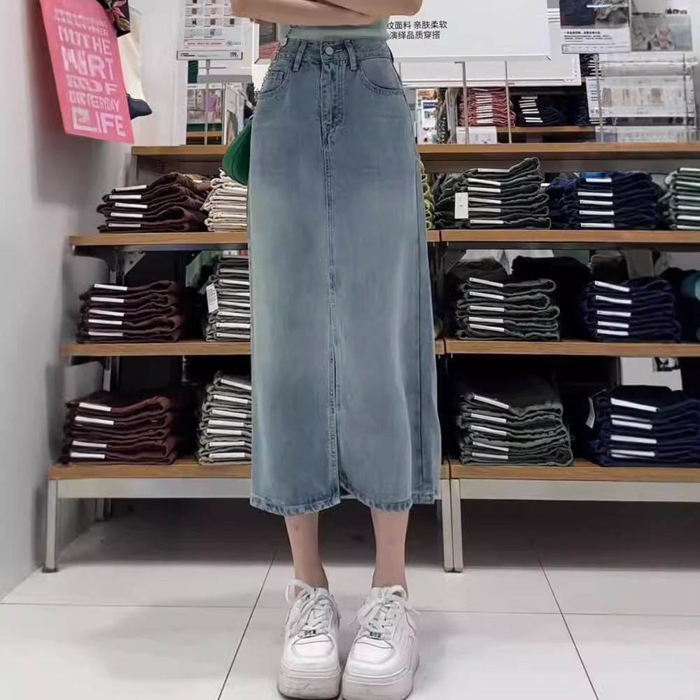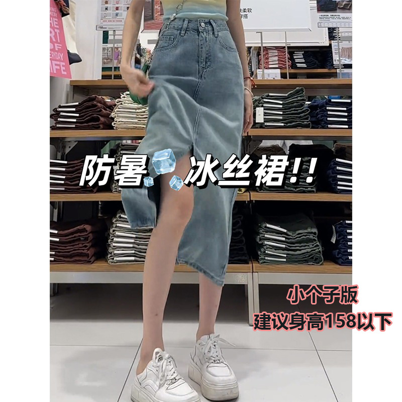 梨形身材蓝色天丝牛仔半身裙女夏季薄款大码高腰显瘦中长款a字裙