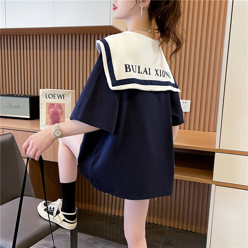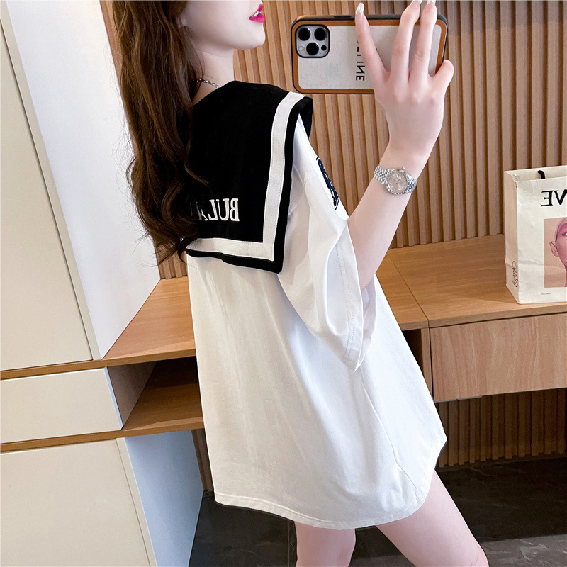 小清新减龄系带领短袖T恤女年新款夏季宽松设计感上衣