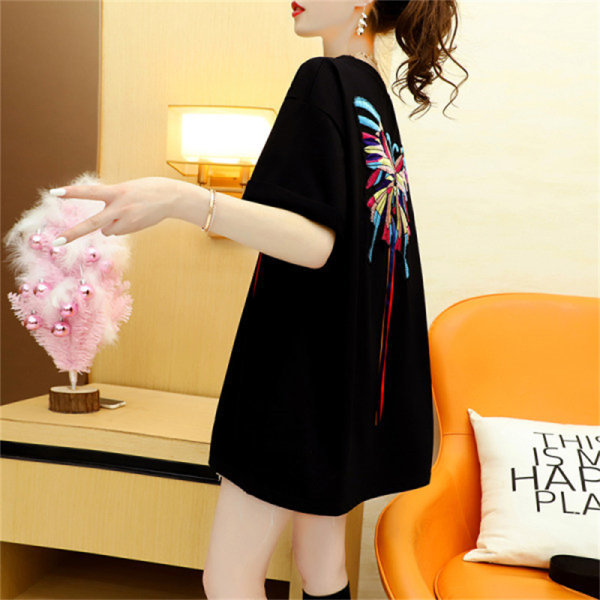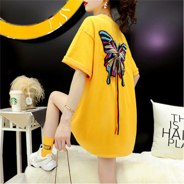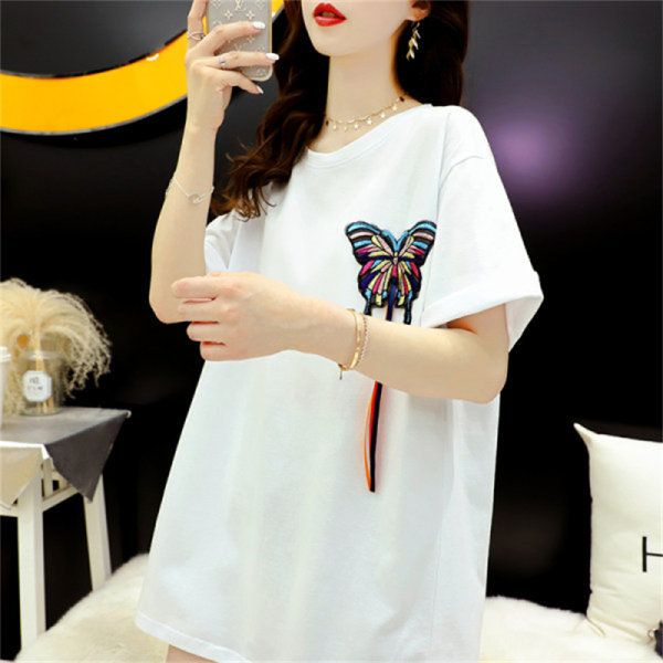 大码女装重工刺绣蝴蝶短袖t恤女夏季新款宽松韩版上衣夏装潮