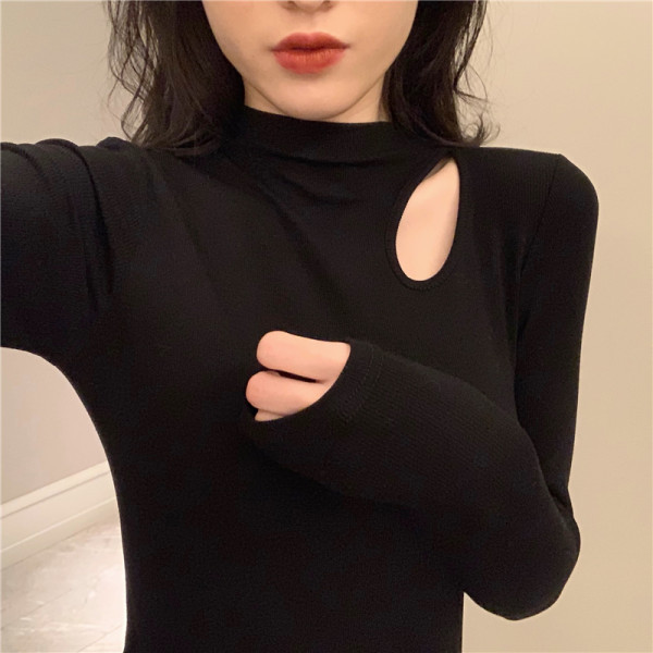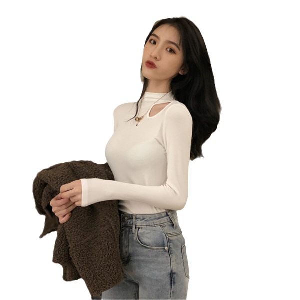 德绒半高领打底衫女初秋新款设计感洋气性感内搭T恤紧身上衣