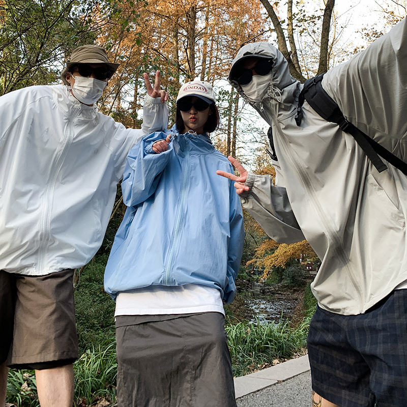山系户外防晒衣男夏季薄款冰丝速干防晒冲锋衣情侣连帽登山服外套
