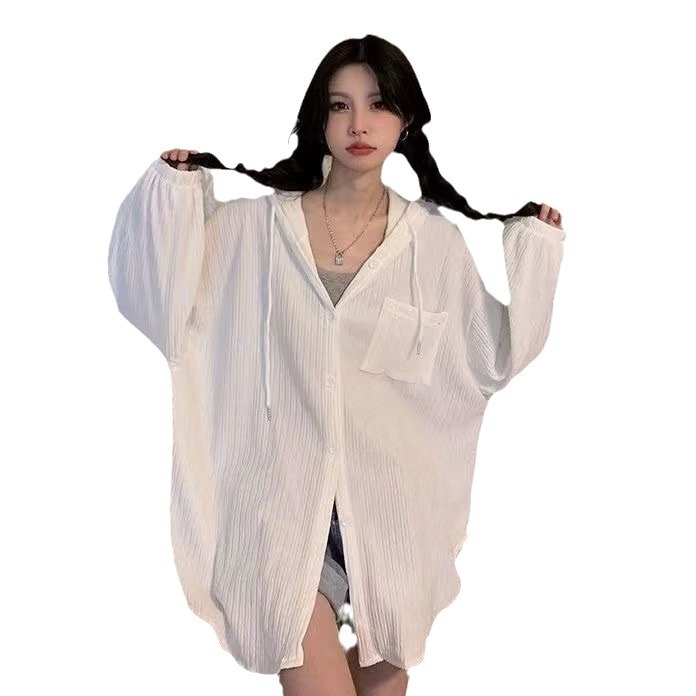 防晒衣女款春季防紫外线中长款宽松大码学生开衫防晒服连帽薄外套