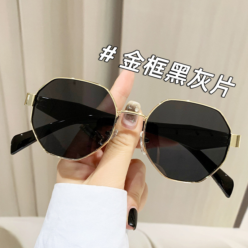 新款墨镜高级感女个性摩登方框多边形金属太阳镜防紫外线太阳眼镜