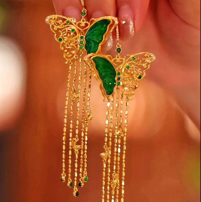 蝶变·蝴蝶流苏耳钉国潮古法不对称耳坠轻奢新中式耳环气质耳饰品