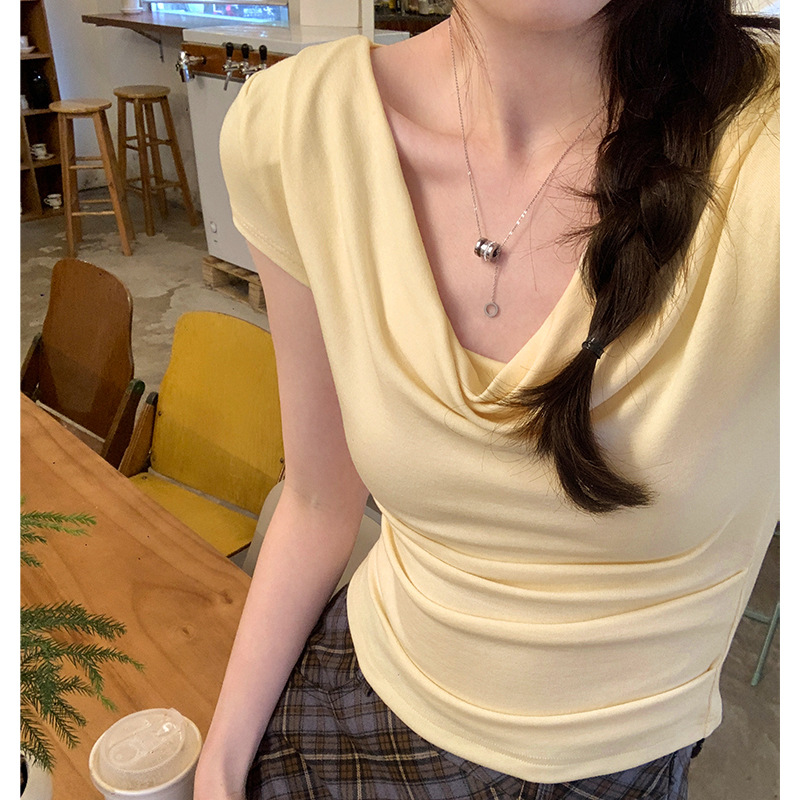 纯欲设计感荡领性感修身显瘦短袖T恤女2025新款新款辣妹上衣欧货