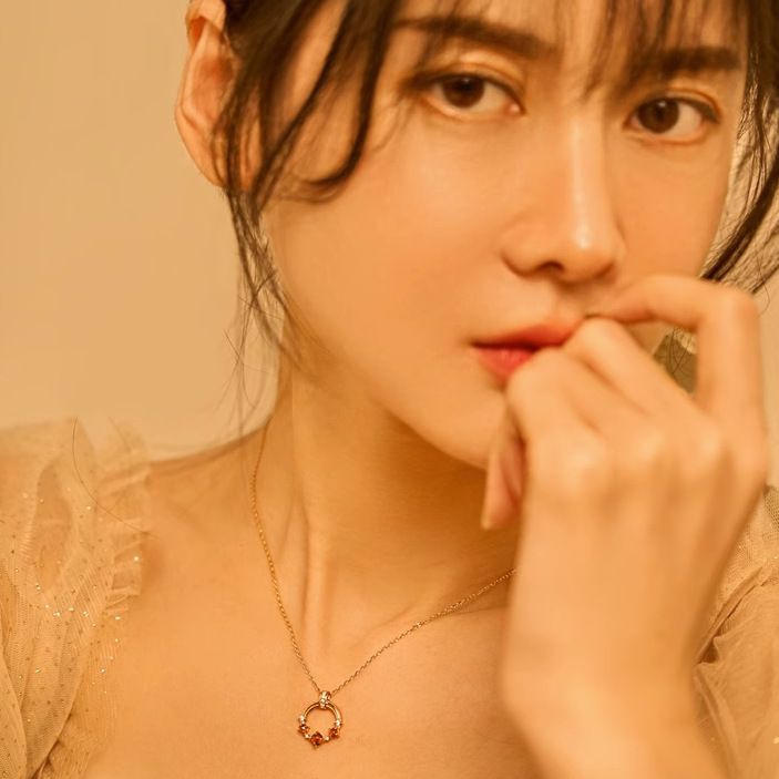 浪漫夕阳《幻日》法式浅橙色石榴石项链复古简约颈链高级感锁骨链