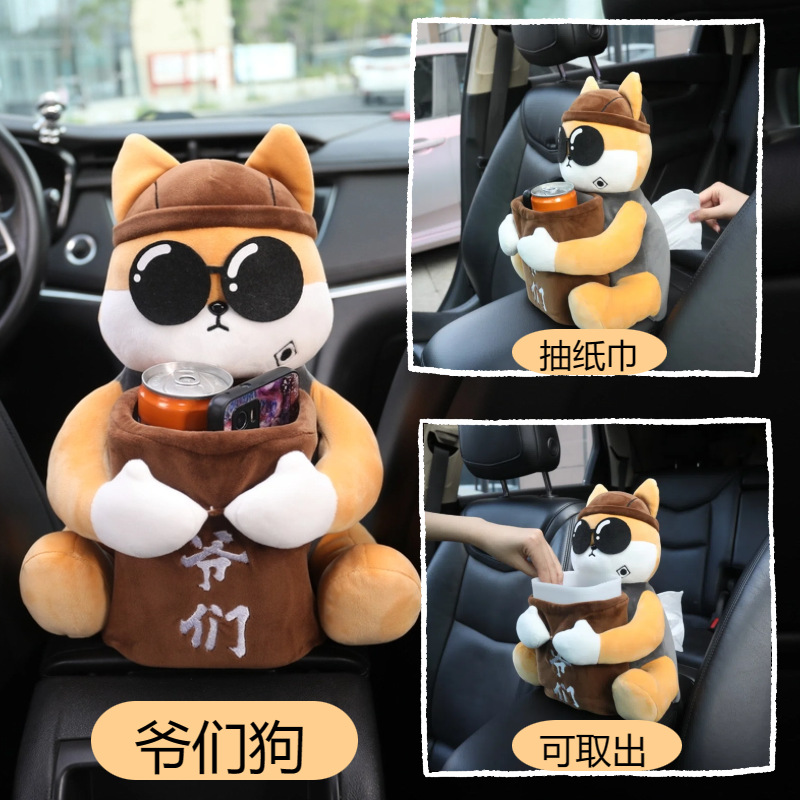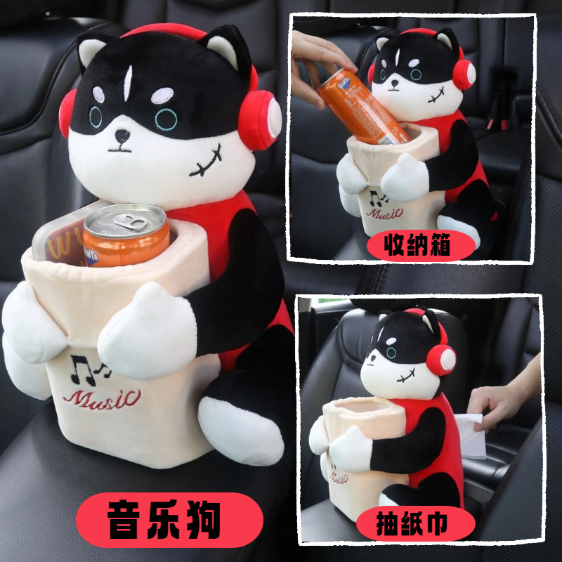 卡通车载纸巾盒垃圾桶二合一汽车扶手箱抽纸盒收纳毛绒车内装饰品