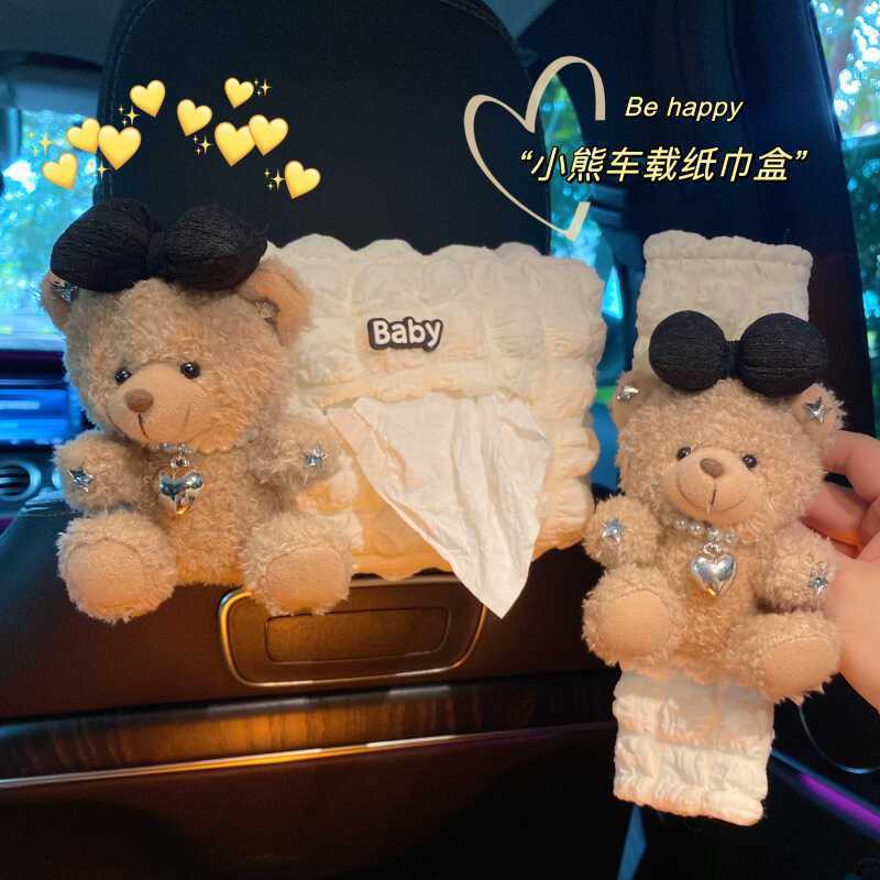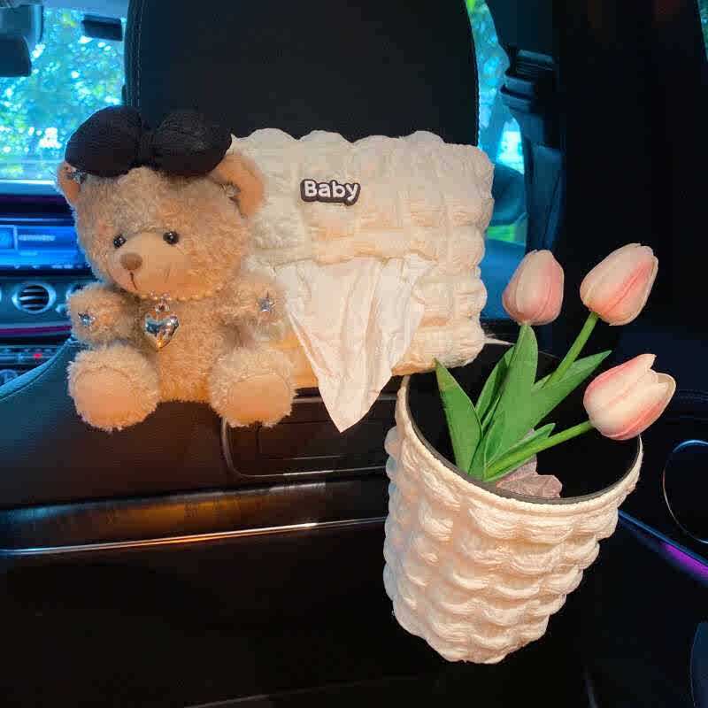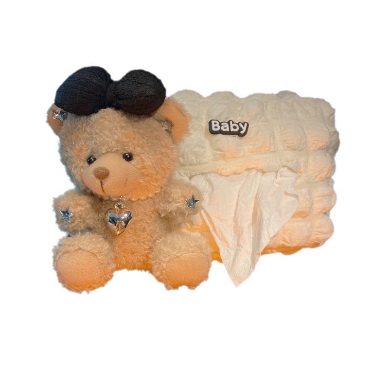 美拉德小熊泡芙白纸巾+垃圾桶