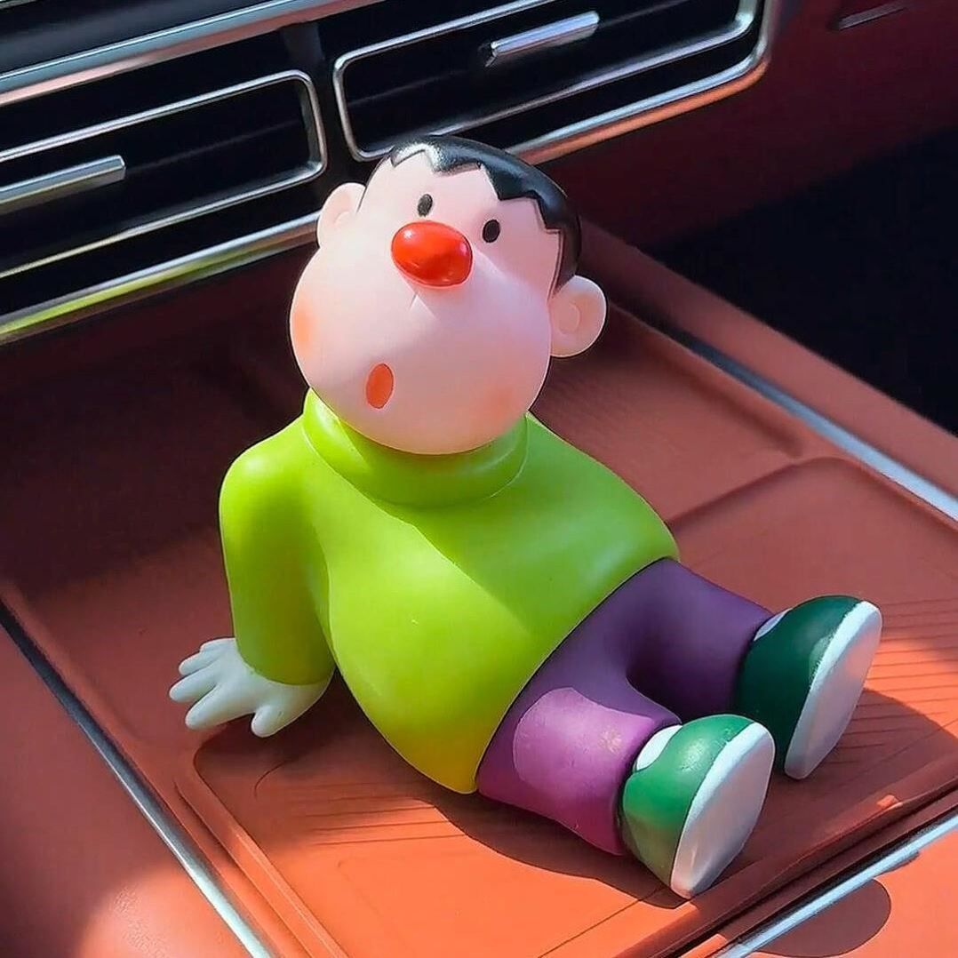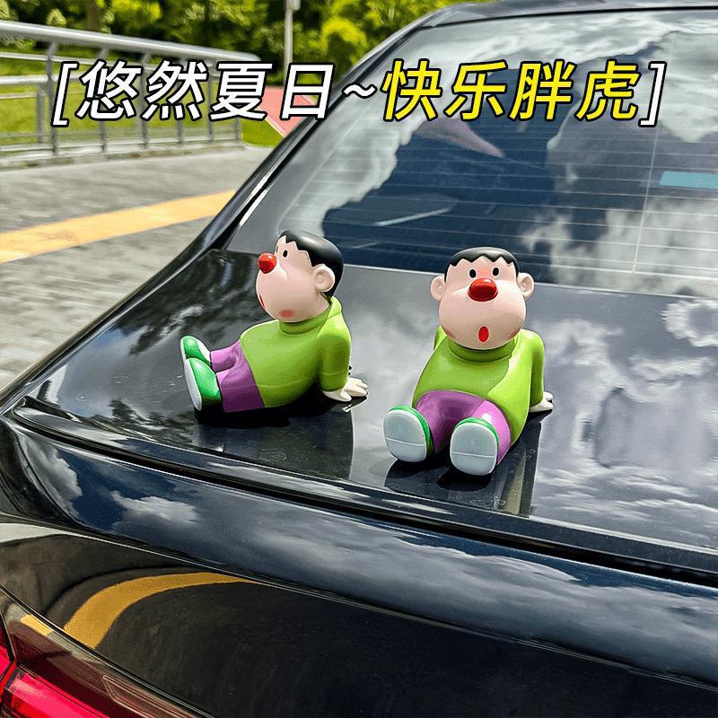 歪头胖虎车载坐姿车顶创意汽车摆件可爱车尾中控台个性公仔装饰