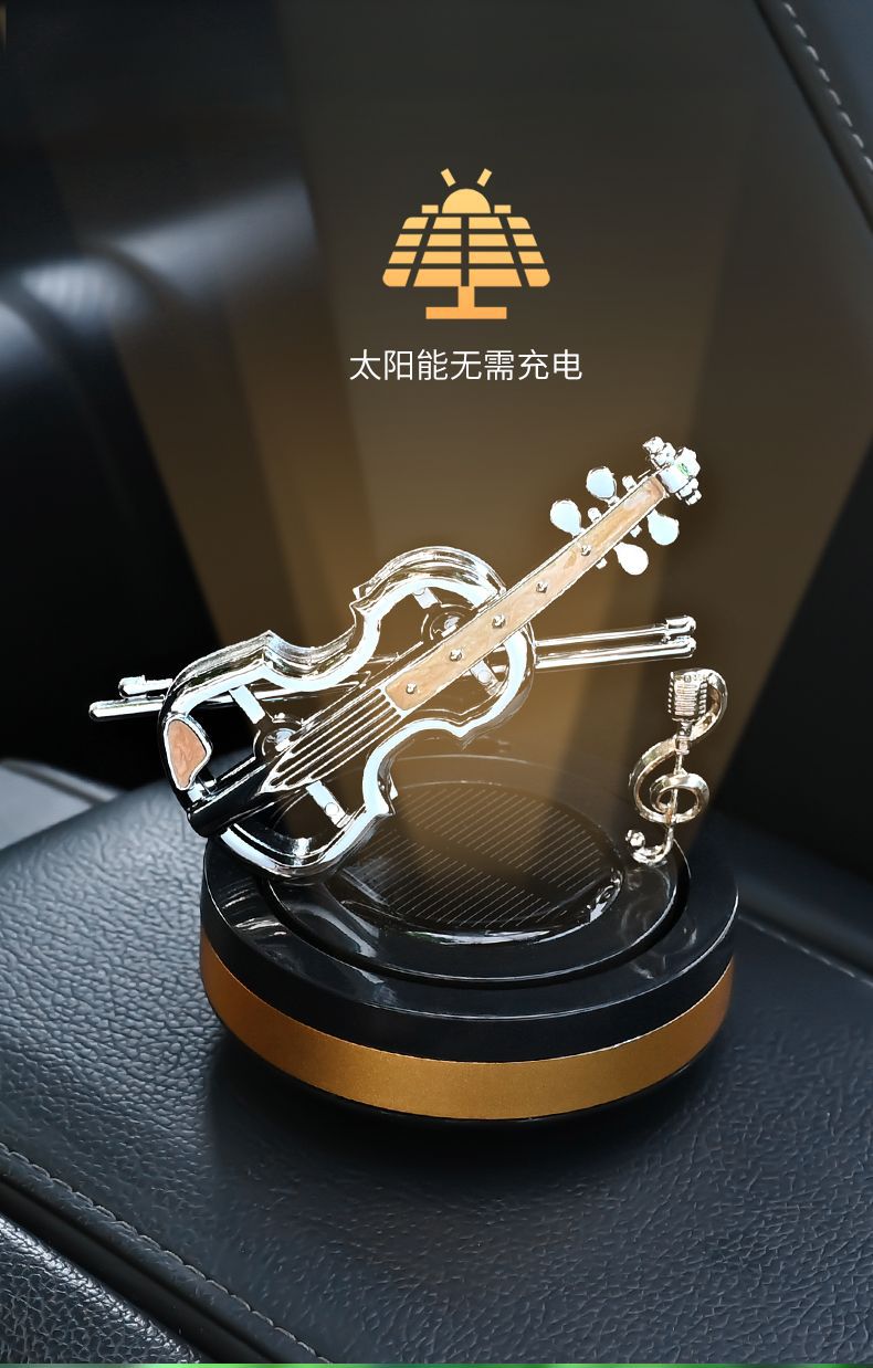 车载太阳能汽车车用旋转香薰香氛车内小提琴香水中控台持久摆件