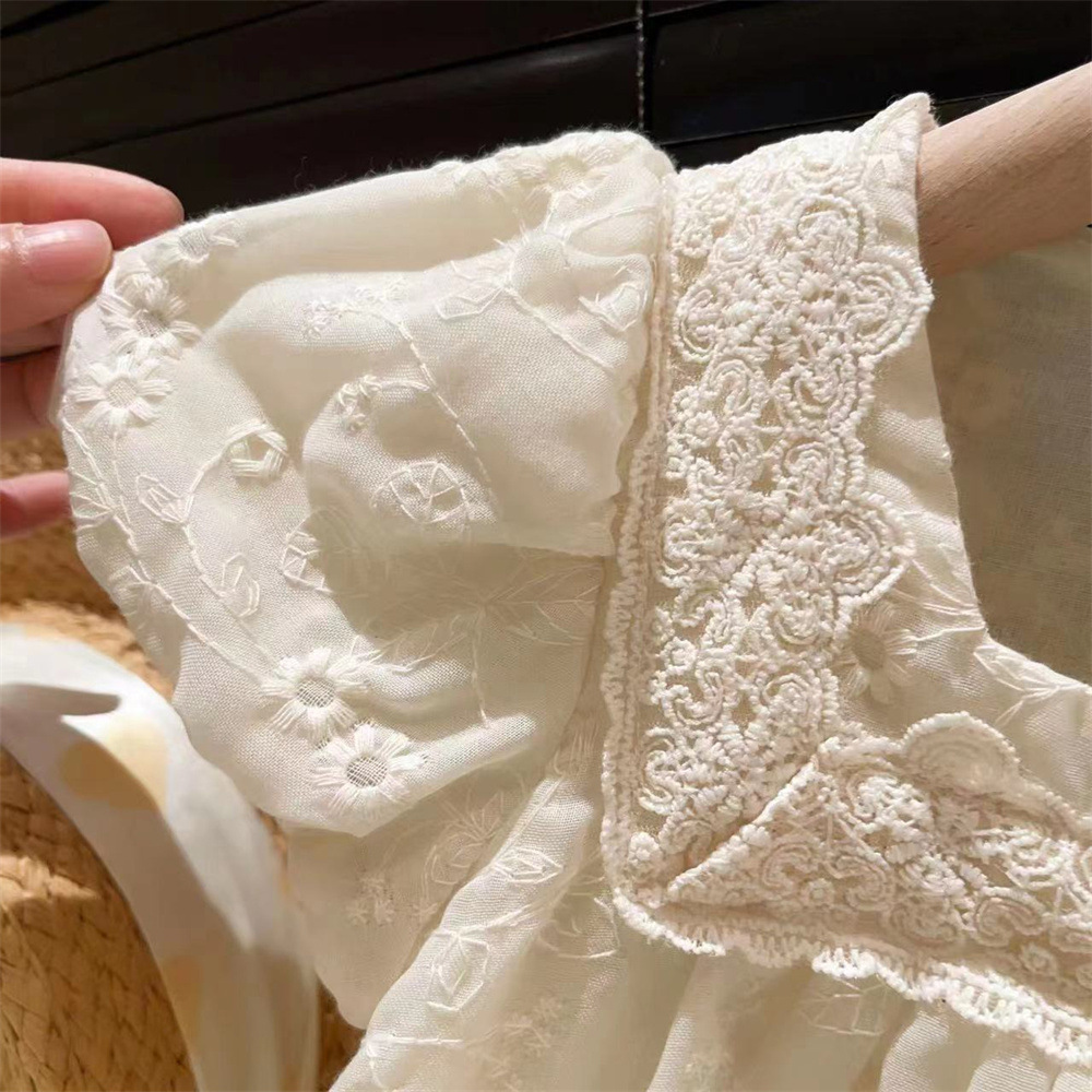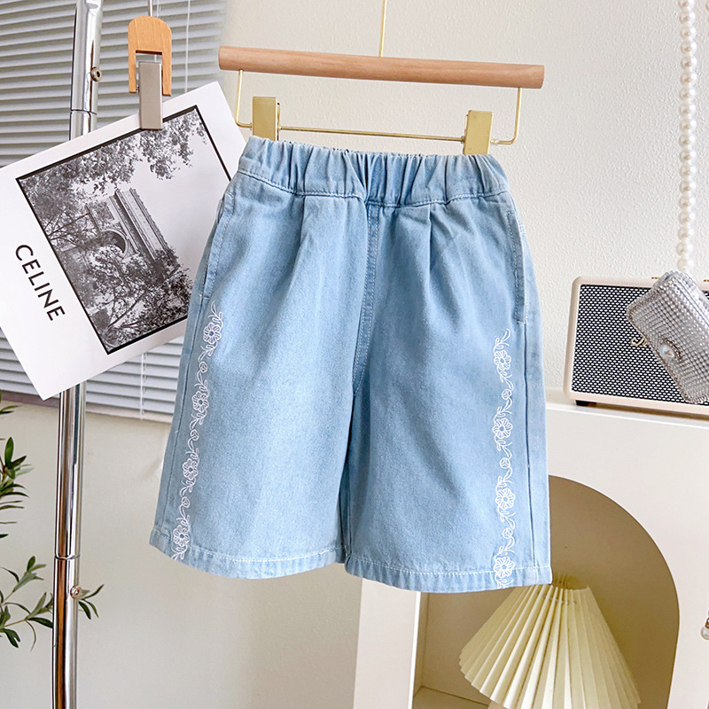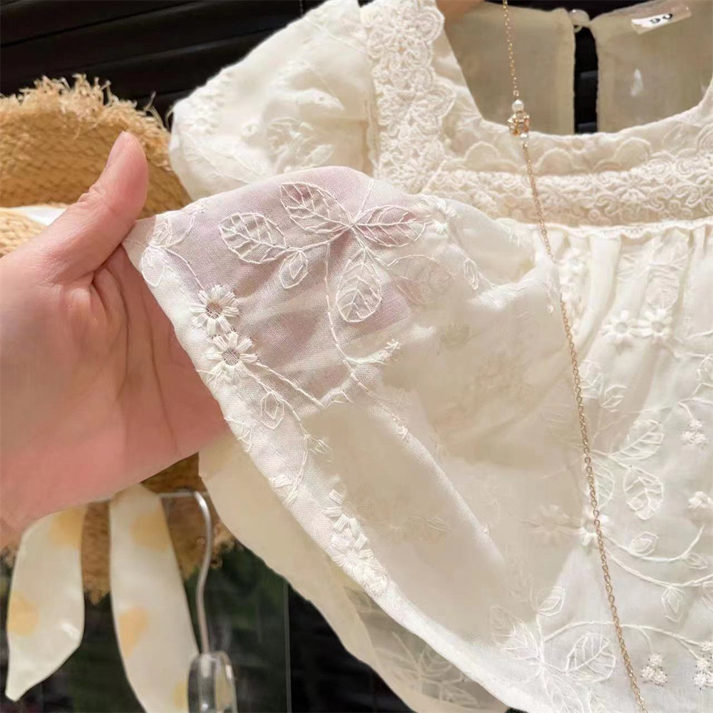 新品方领泡泡袖刺绣娃娃衫牛仔裤两件套2025夏装女童上衣娃娃套装
