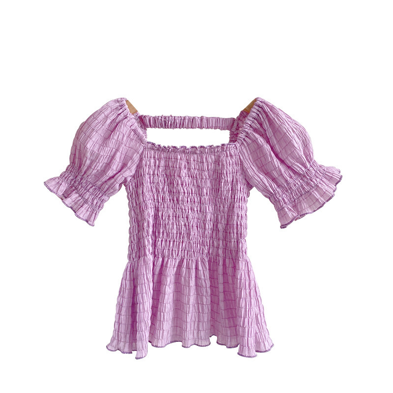 2025夏季儿童露背衬衣衬衫夏款女童泡泡短袖褶皱娃娃衫褶皱上衣潮