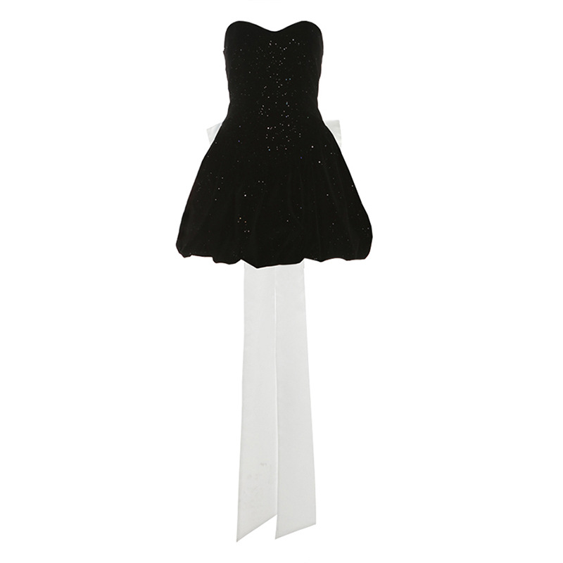跨境欧美风新款女装优雅时尚蝴蝶结紧身蓬松设计连衣裙
