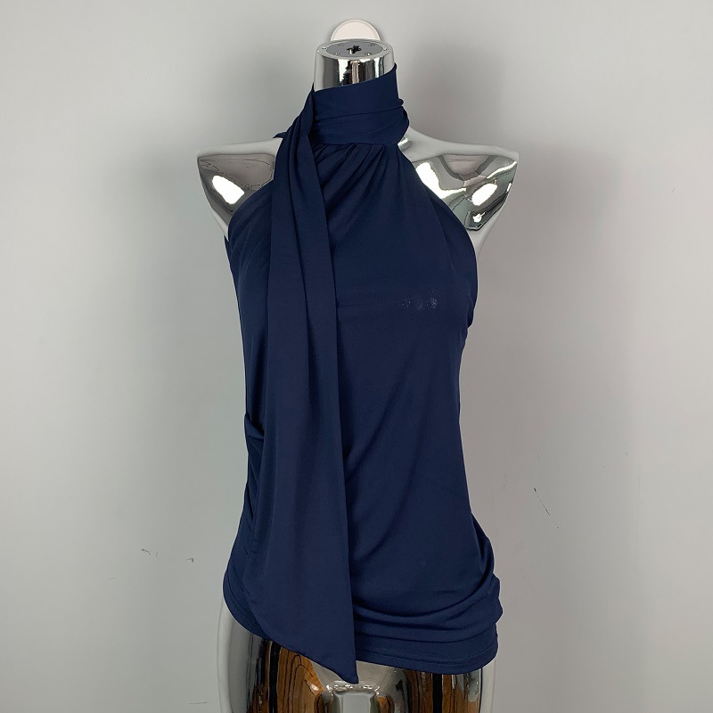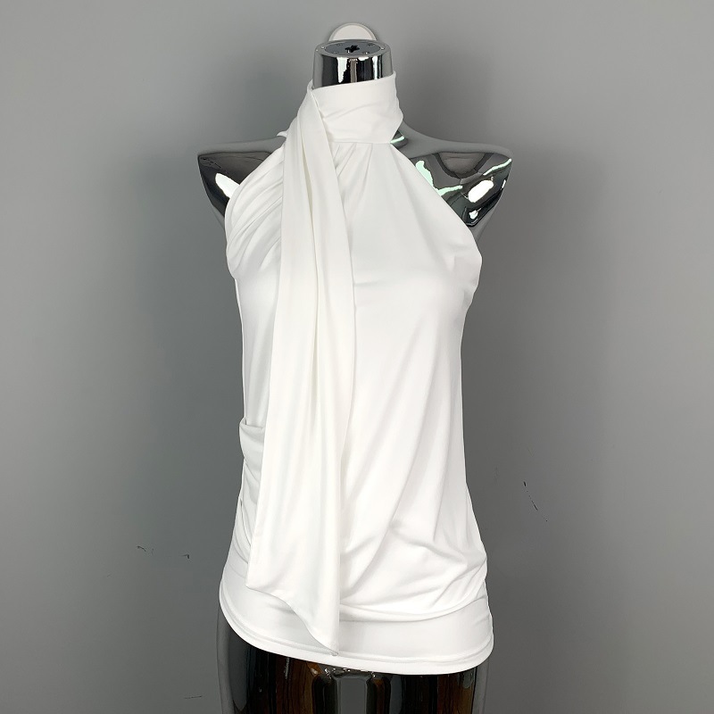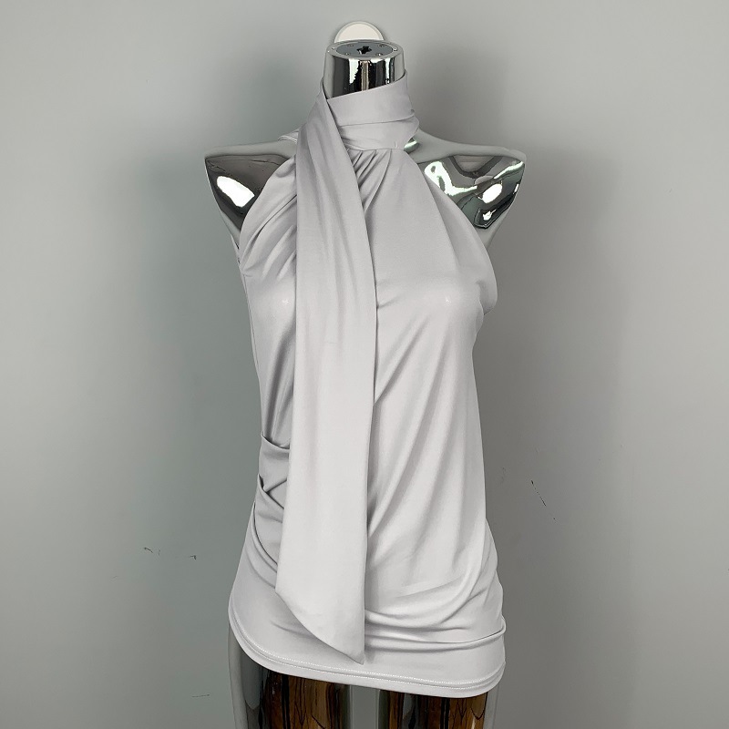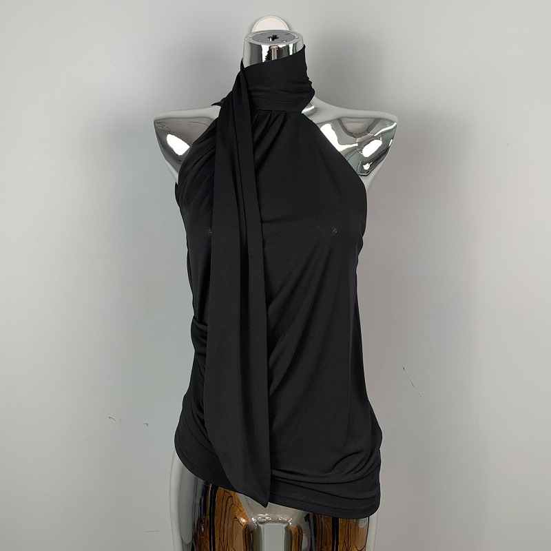 韩国东大门修身显瘦气质性感挂脖背心女露锁骨显身材飘带上衣百搭