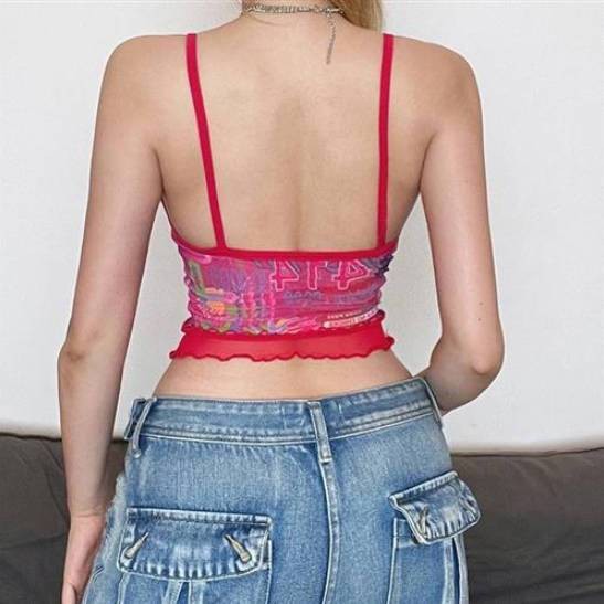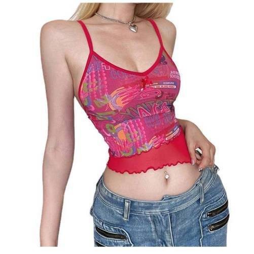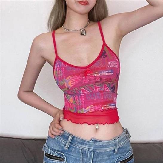 涂鸦印花吊带背心2025夏季新款修身辣妹百搭纯欲显瘦露脐欧货上衣