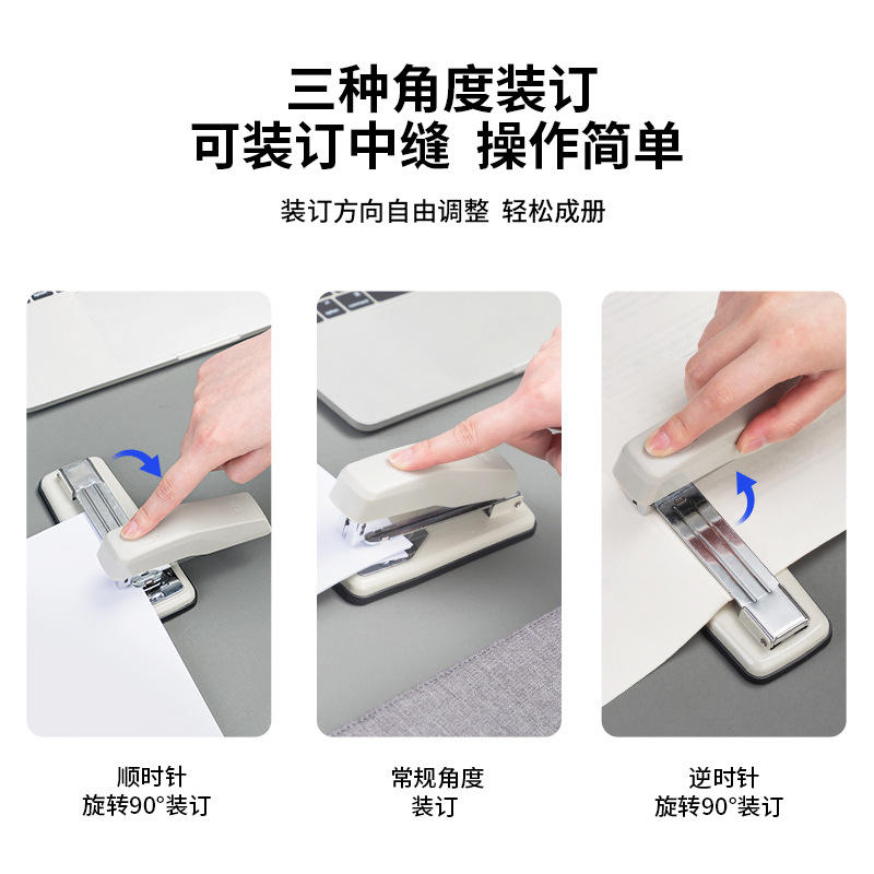 得力订书机学生用订书器办公用可旋转加厚钉书机家用省力定书机