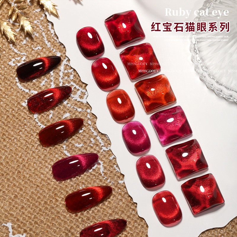 红宝石猫眼指甲油胶2025年新款秋冬显白血浆红酒红色晶石猫眼美甲