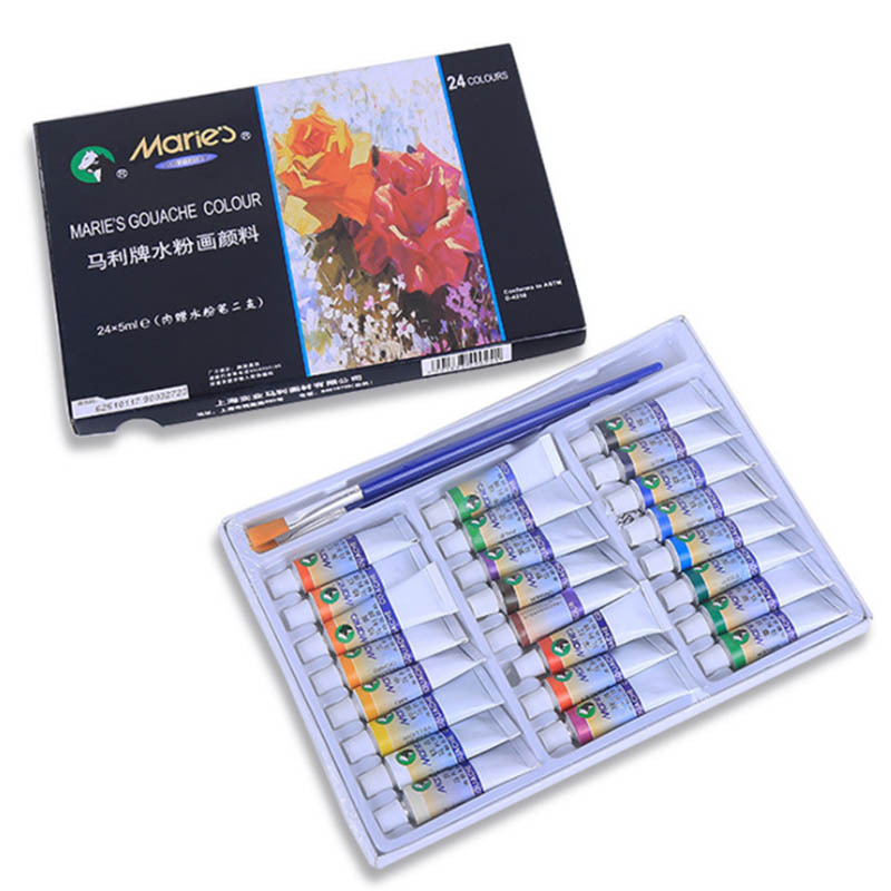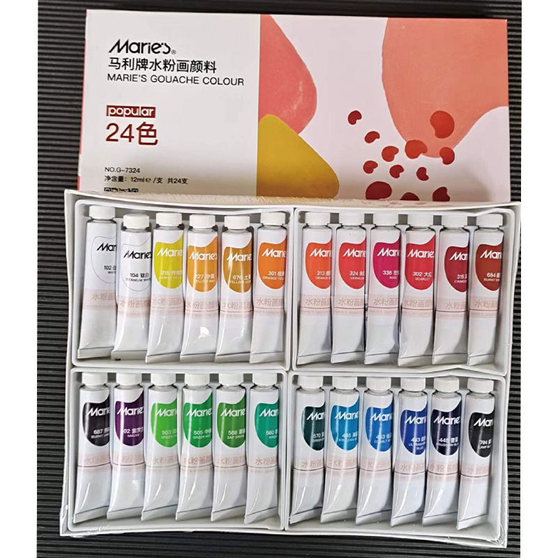 马利牌水粉画颜料12色24色36色12ml 可水洗颜料套装 初学者24色