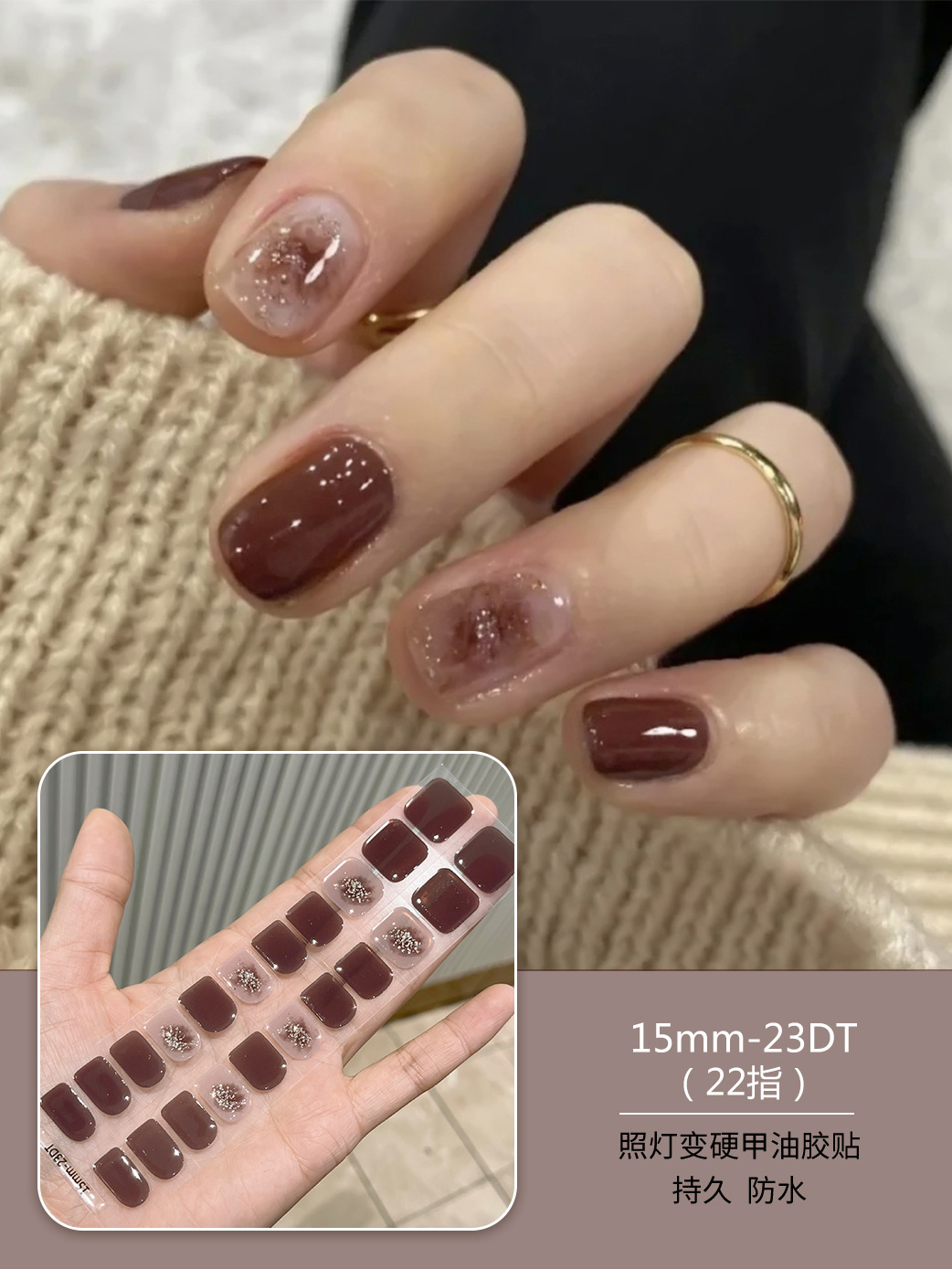 【15mm短甲型】23DT照灯变硬半固化uv凝胶美甲贴纸成品