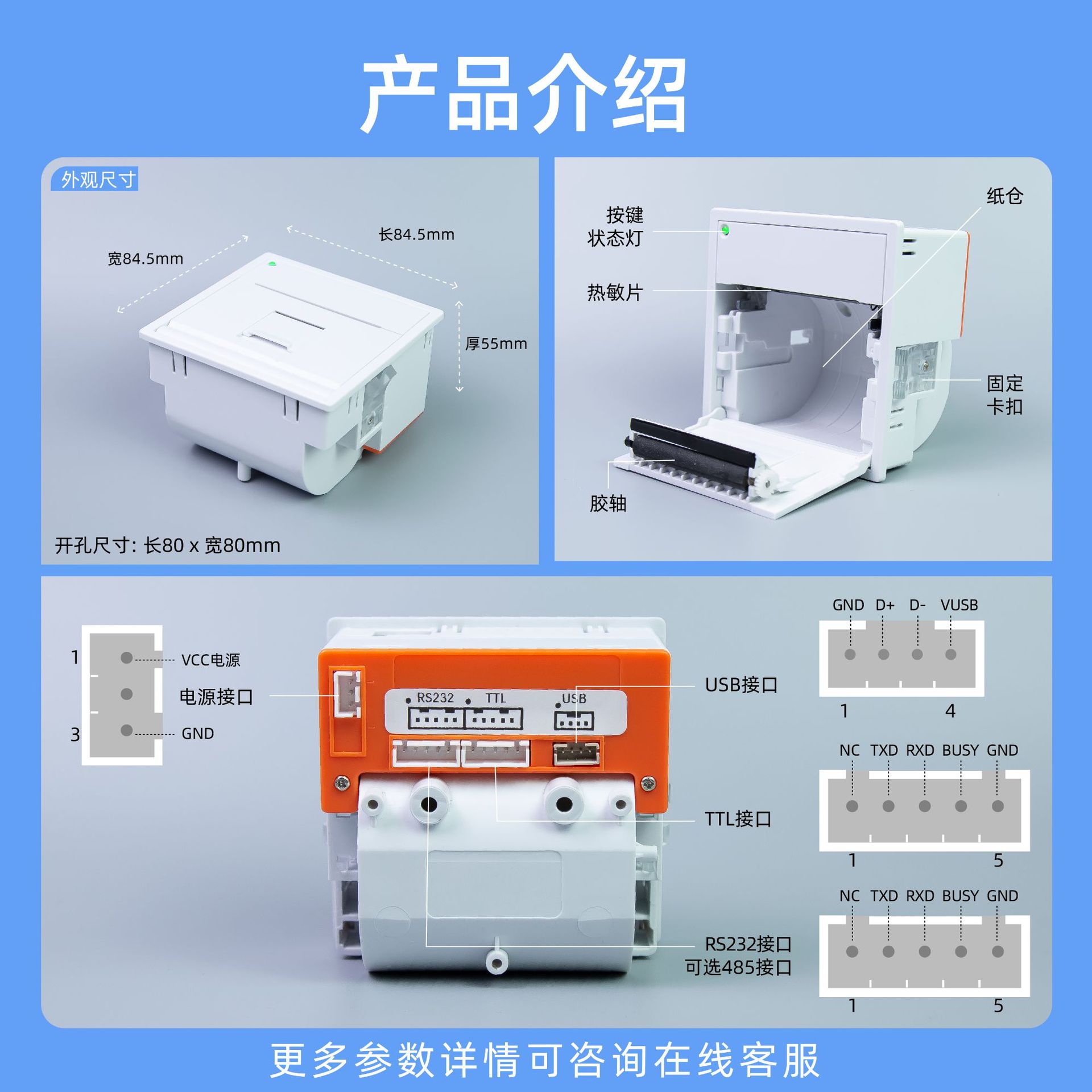 嵌入式小票标签打印机58纸宽串口仪器仪表环境检测设备