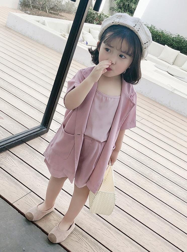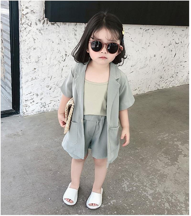 女童网红套装2025夏季新款韩版儿童洋气西服三件套小女孩时尚夏装