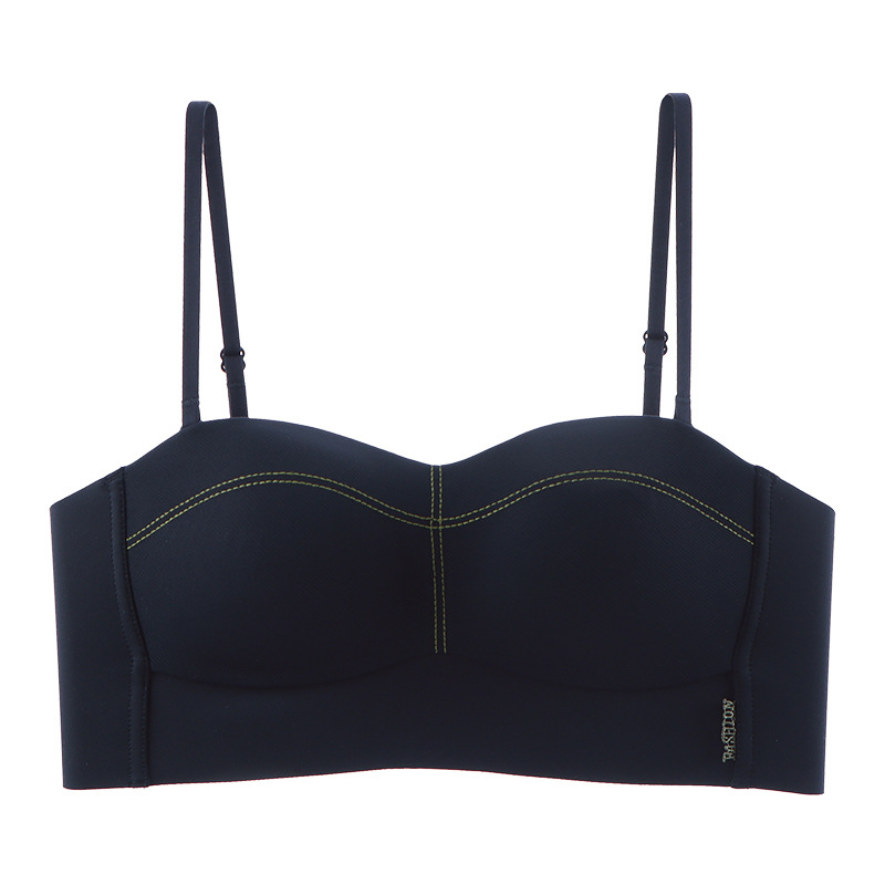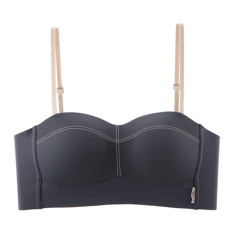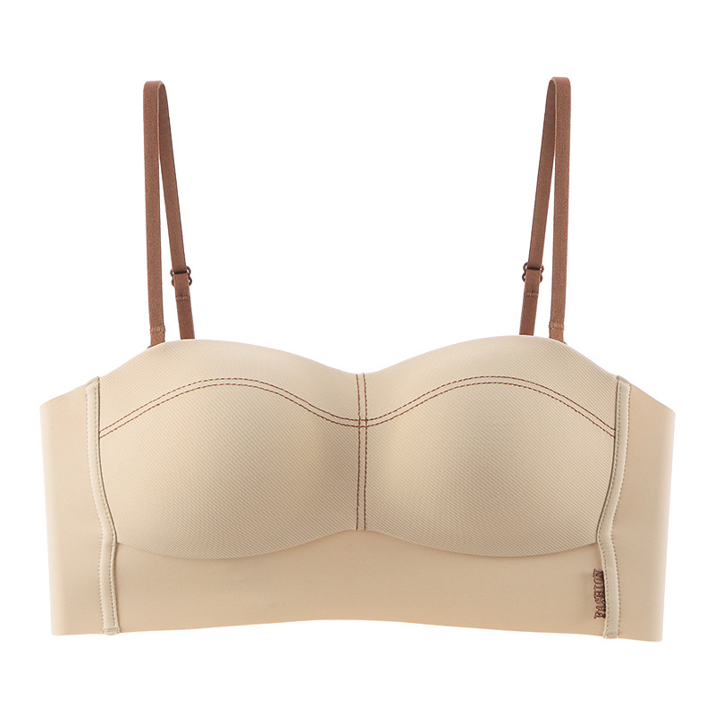 无痕撞色抹胸文胸无钢圈小胸聚拢上托调整型一体式内衣女侧收透气