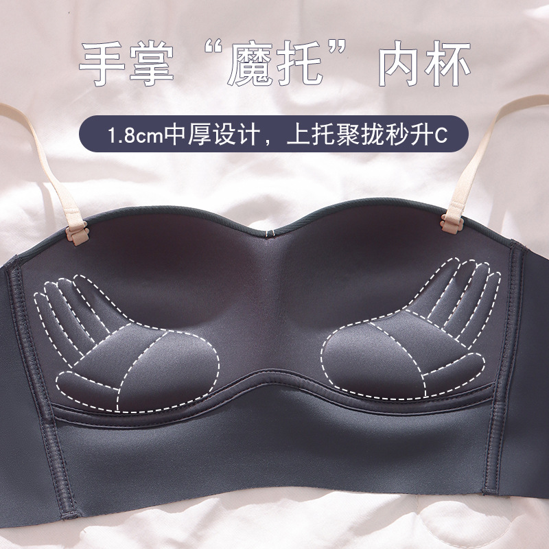 防滑文胸吊带小胸聚拢半杯光面防走光无肩带内衣女透气无钢圈胸罩