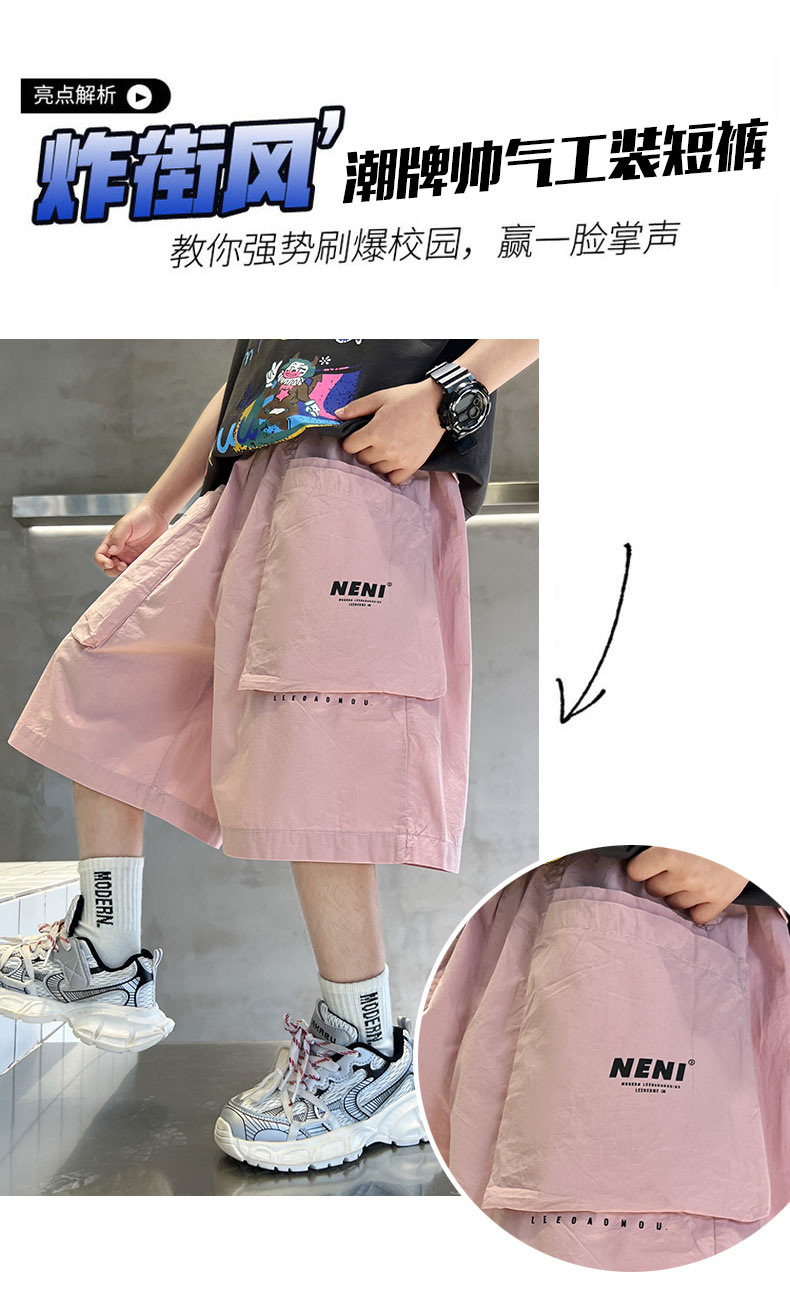 夏季中大男童休闲短裤新款童装儿童男孩大口袋中五分裤薄款百搭潮